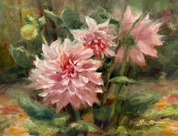 Colorful, soft and graceful, flowers often seem to dance, so I pay close attention to their movement. I try to capture the spirit of each distinct flower, painting just enough of its unique characteristics without rendering every detail. Rich oil paint lends itself to luscious brushstrokes and depth to achieve the elegance for which I strive.